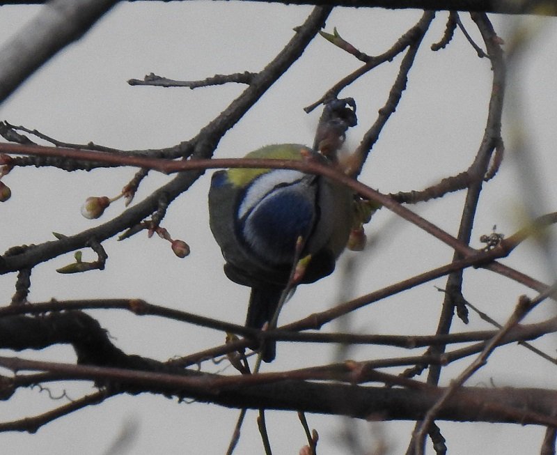 Po dłuższym fotopolowaniu udało mi się zrobić zdjęcie wyjątkowo ruchliwej modraszce (znanej również jako sikora modra). Kręciła się po drzewie, przefruwała z miejsca na miejsce, ale kilka razy zdążyłem wycelować i wyostrzyć. Tyle że światło było nienadzwyczajne, ale za to ujęcie fajne, bo ptaszek zwisa z gałęzi głową na dół (nawet w Wikipedii opisano to jako typowe zachowanie – https://pl.wikipedia.org/wiki/Modraszka_zwyczajna#Zachowanie)