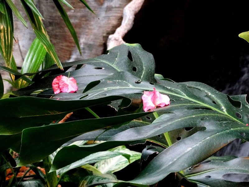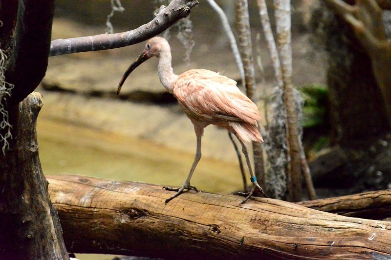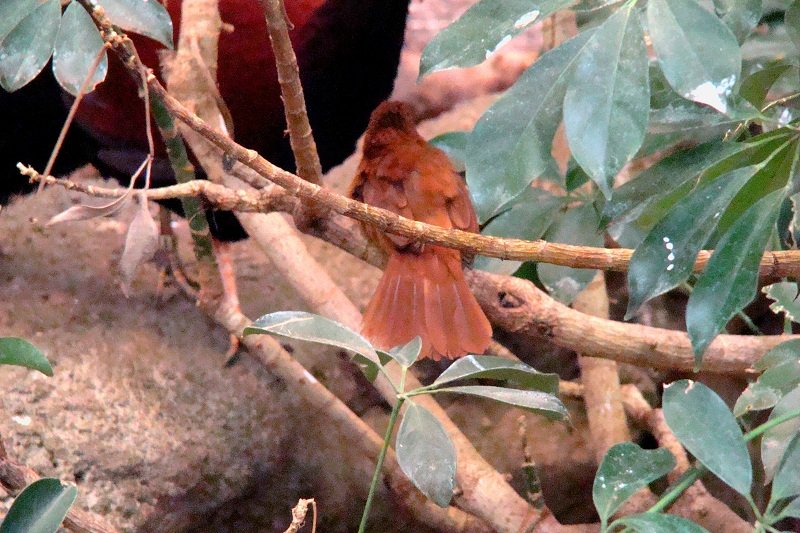 O ile dobrze zrozumiałem (w Smithsonian Zoo jest podobnie), to tutaj ludzie wchodzą przez odpowiednią „śluzę” do wielkiej woliery i sobie po niej spacerują, a potem podobnie wychodzą. W tym sensie MIĘDZY ludźmi a ptakami nie ma żadnej kraty ani szyby.