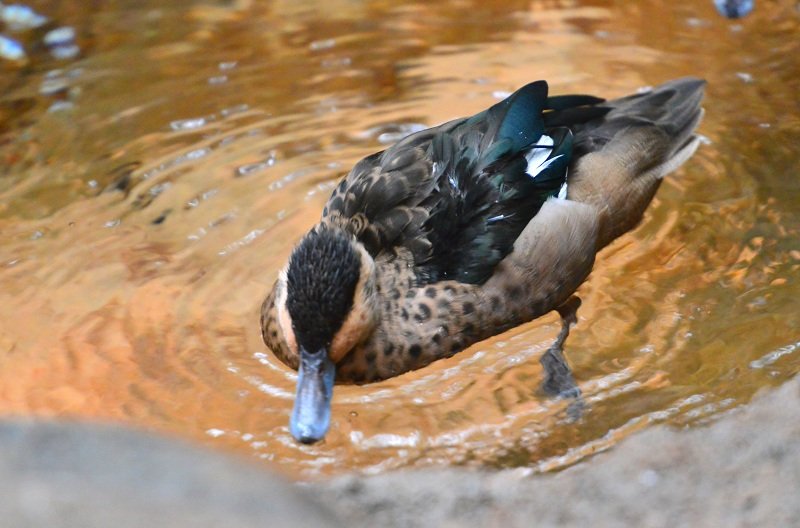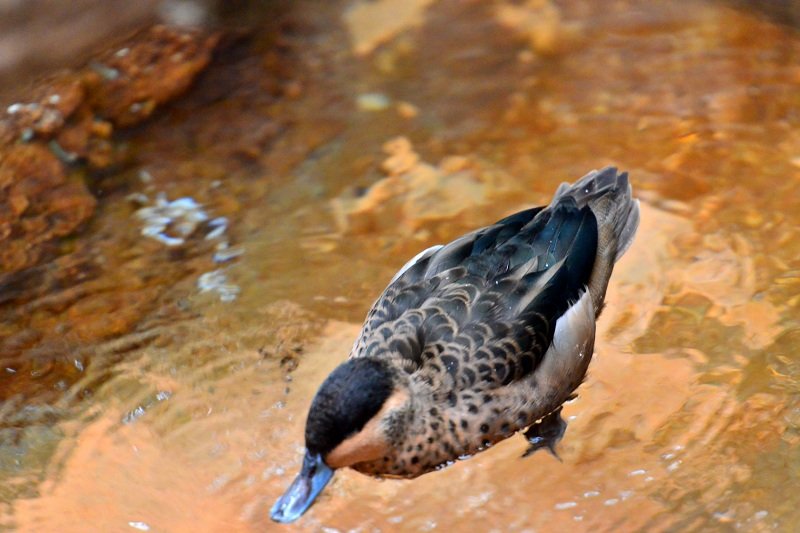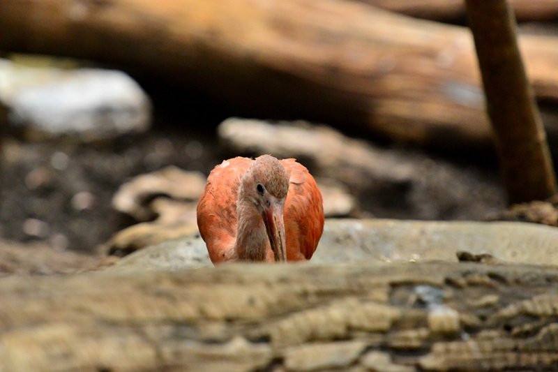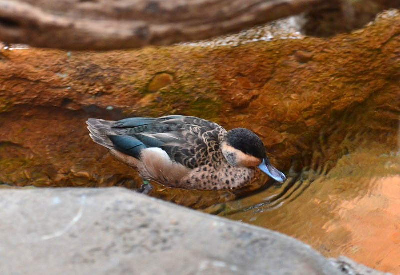 W Lincoln Park ZOO pawilon z ptakami jest bardzo duży. Sporą część zajmuje teren wolny od krat i szyb… to moje ulubione miejsce… Jest tam mostek, pod którym płynie strumyk… i to jedyna droga, którą zwiedzający mogą iść. Po obu stronach są zagajniki z mini plażą i skałkami. A ptaki są wszędzie. Drepczą dokoła, pływają, fruwają z gałęzi na gałąź… Dzięki planszom na mostku wiadomo kogo wypatrywać…