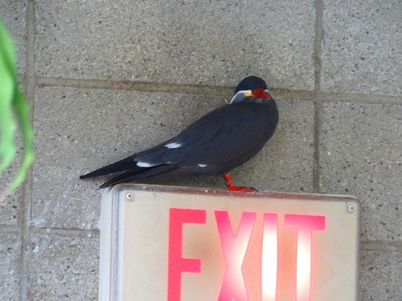 Rybitwa wąsata siedziała na tabliczce „wyjście”, bo może chciała wyjść? A nikt nie zrozumiał…