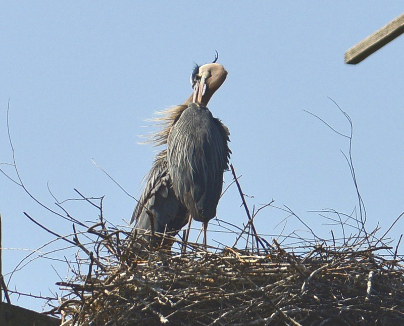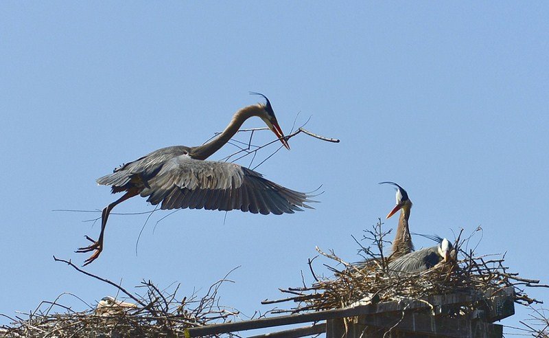 Czapla modra żyje w koloniach. Buduje gniazda w koronach drzew, ale widziałam też kolonię tych ptaków na platformach wybudowanych specjalnie dla nich przez ludzi.