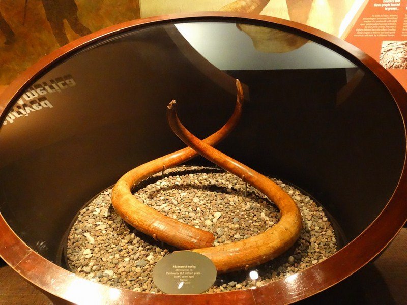 Dalej było prawie jak w normalnym muzeum. Eksponaty w gablotach, napisy z historią tej ziemi… Według naukowców, Indianie są potomkami Azjatów. Parę tysiącleci temu można było przejść z Syberii na Alaskę po lodzie i ludzie szli tamtędy. Szukali nowego miejsca do życia… Niektórzy doszli aż do Ameryki Południowej… Oczywiście ta wędrówka trwała stulecia, a nie kilka miesięcy czy lat…