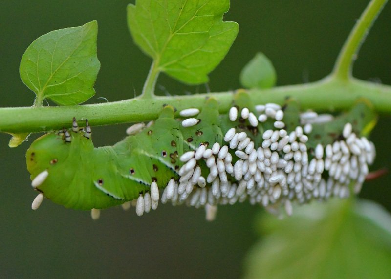 Moje pomidory urosły do takich rozmiarów, że nie mam odpowiednich tyczek, żeby je podwiązać. Są dużo większe niż ja. A pomidorów mają tyle, że gałęzie się na nich łamią. Jeden z krzaków padł, bo się połamała tyczka Wink Poszłam go ratować i znalazłam taką lichę. Ogromna! W ubiegłym roku też takie mieliśmy, ale ta była dziwna… Obejrzałam dokładniej… prawie cała pokryta jakimiś pasożytami. Dość makabrycznie to wygląda…