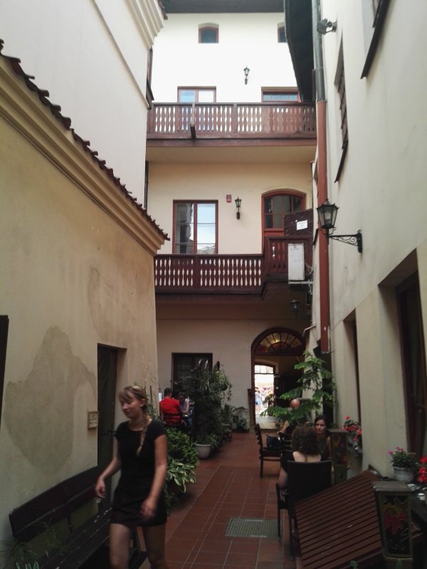 Co do klatki schodowej, czy też wewnętrznego podwórza z fragmentami nieba pomiędzy dachami, to masz nader podobne miejsce, że tak powiem, pod bokiem, tzn. tuż przy dworcu PKP Kraków Główny, w Gospodzie Krakowskiej, która ma ogródek na wewnętrznym dziedzińczyku Station Aparthotelu – bardzo podobnie.