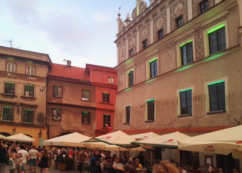 Jakże przyjemnie się po tym Lublinie chodziło.Dawno nie widziałam takich tłumów,niemniej to dobrze świadczy o ludziach,bo chcą w tym uczestniczyć.Podobały mi się ogródki knajpiane,można było siąść (o dziwo bywały wolne miejsca) i z pozycji krzesełka,sącząc zimne piwo oglądać występy linoskoczków;).