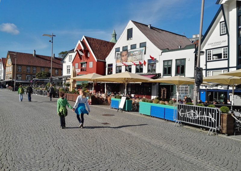 Jak wspominałem uprzednio, nie dane nam było spędzić pod żaglami tyle czasu, ile planowaliśmy. Dziś przedstawię wam uroki naziemnego zwiedzania fragmentów tego kraju. Na początek spacer po dwóch odwiedzonych miastach: Bergen i Stavanger. Podstawowe wrażenia: mnóstwo wysokich mostów oraz tuneli. Zwłaszcza w Bergen bardzo mało płaskiej przestrzeni, uliczki wiszą jedna nad drugą na zboczach. Dużo dbałości o urodę miast, choć wszechobecność budynków pokrytych poziomymi deskami lakierowanymi na biało jest nieco monotonna. Wiele rozmaitych rzeźb i pomników. Drogo: benzyna droższa niż u nas (choć kraj ropą stoi!), ryby nie ma gdzie kupić choć morze dookoła, puszka piwa 24 do 36 NOK (czyli 12 – 18 PLN) a i to zegarowe ograniczenia w sprzedaży, mocniejszy alkohol dostępny ponoć w jednym czy dwóch sklepach w mieście, autobus miejski 55 NOK (27,50 PLN).