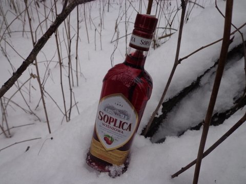 W plecaku -Soplica wiśniowa.
