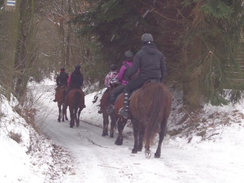 A ja wędrowałam po zimowym lesie zabierzowskim. Śnieg chrzęścił pod nogami i sypał z góry. Były wódeczki i serniczek. I konie. Czas wracać niestety… Jakieś 12 km przeszliśmy, więc dobre i to.
