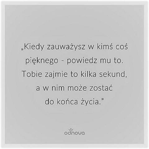 Ja pamiętam jak mój wnuczek powiedział starowince przy kasie w sklepie: „Ładnie pani wygląda” i kobitce od razu wygładziły się zmarszczki 🙂 Słowo ma siłę sprawczą.