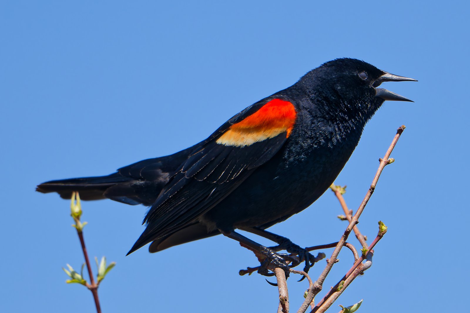 Bardzo ładny kolaż z roślin i ptaszków, ukazujący, że w jednej i drugiej grupie można znaleźć podobne schematy kolorystyczne. Pani epoletnikowa wygląda jak elegancka grafika piórkiem, podobnie jak bezlistne drzewa -z kolej jej małżonek zakwita swoimi epoletami…