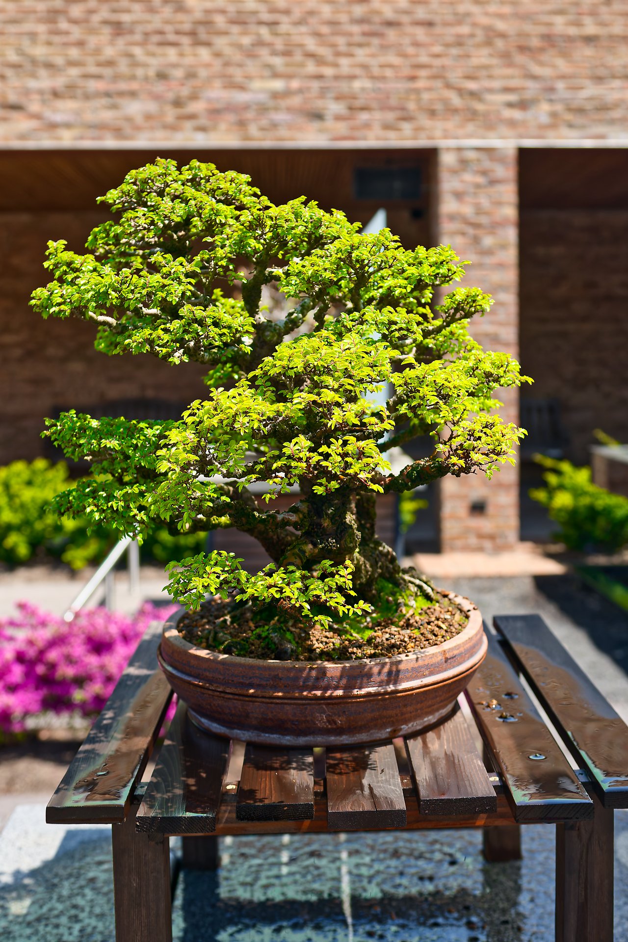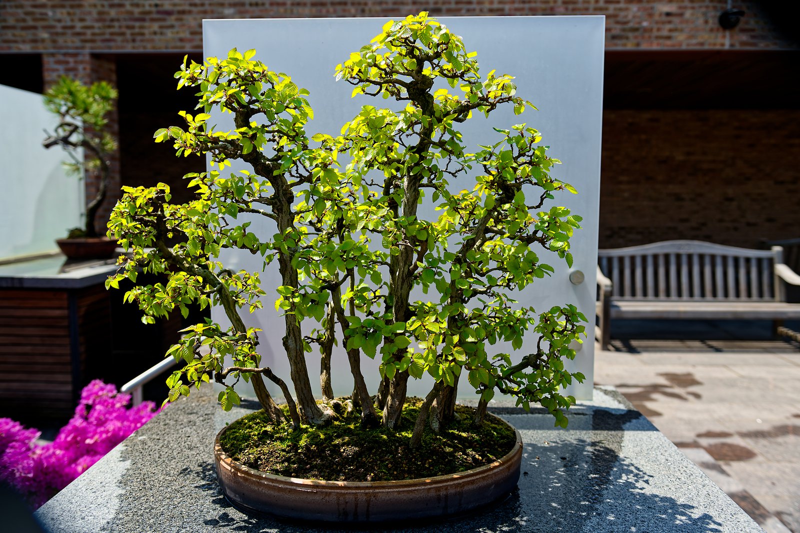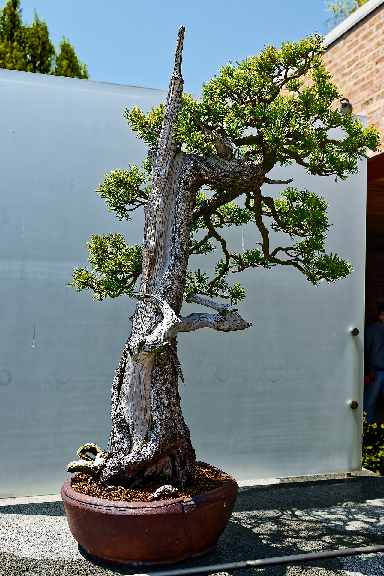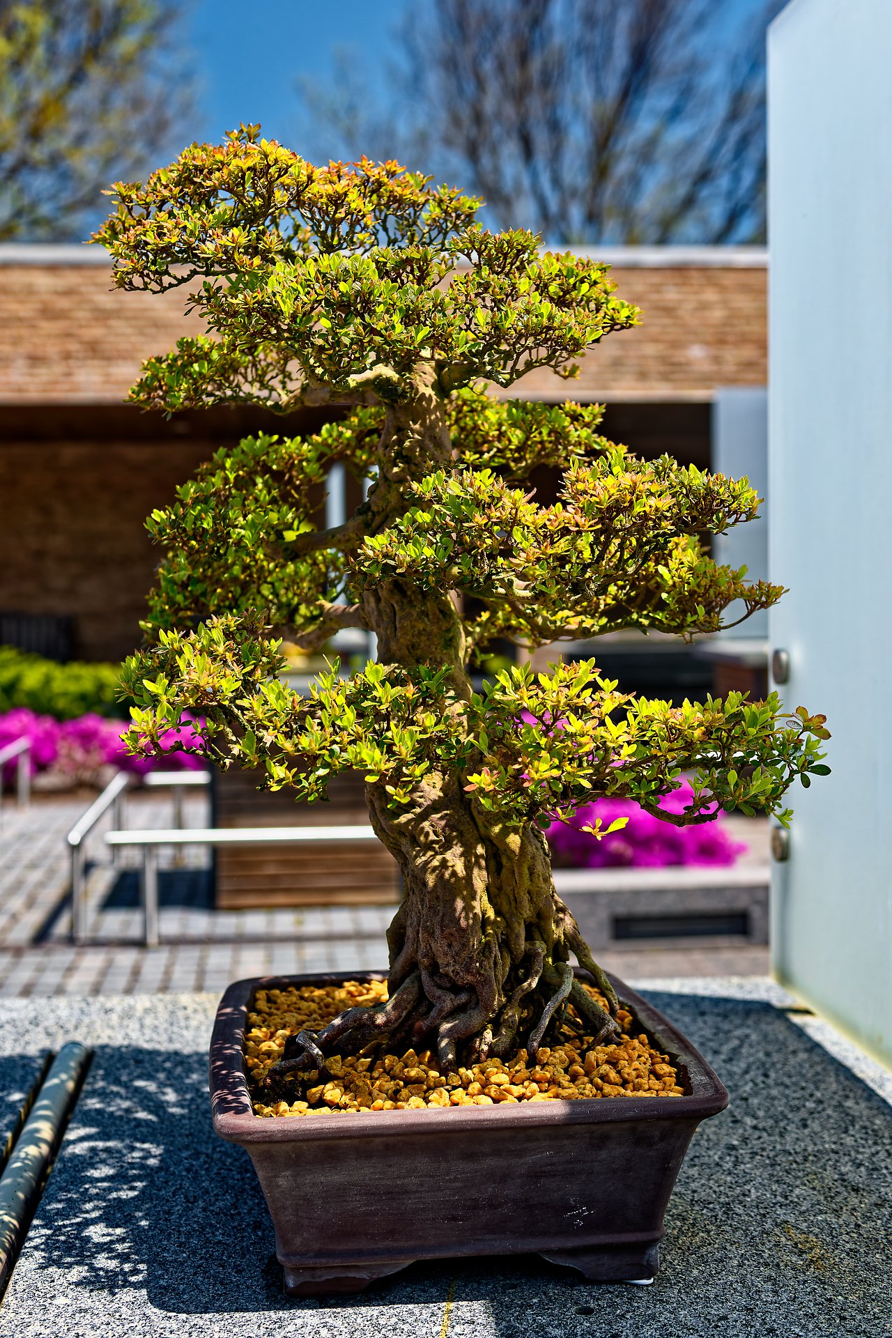 W tej części przedstawię drzewka bonsai w ekspozycji na świeżym powietrzu. Każdy chyba wie, co to jest azjatycka sztuka bonsai:) Ogólnie mówiąc jest to miniaturyzacja roślin, ale w zgodzie z naturą. Jest kilka stylów tej sztuki. Żeby była w miarę równowaga w zdjęciach w każdej części, na końcu dodałem parę zdjęć ptaszków spotkanych po drodze.