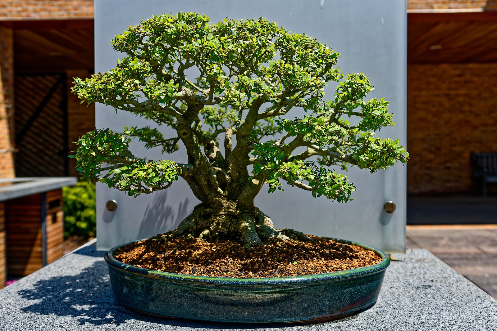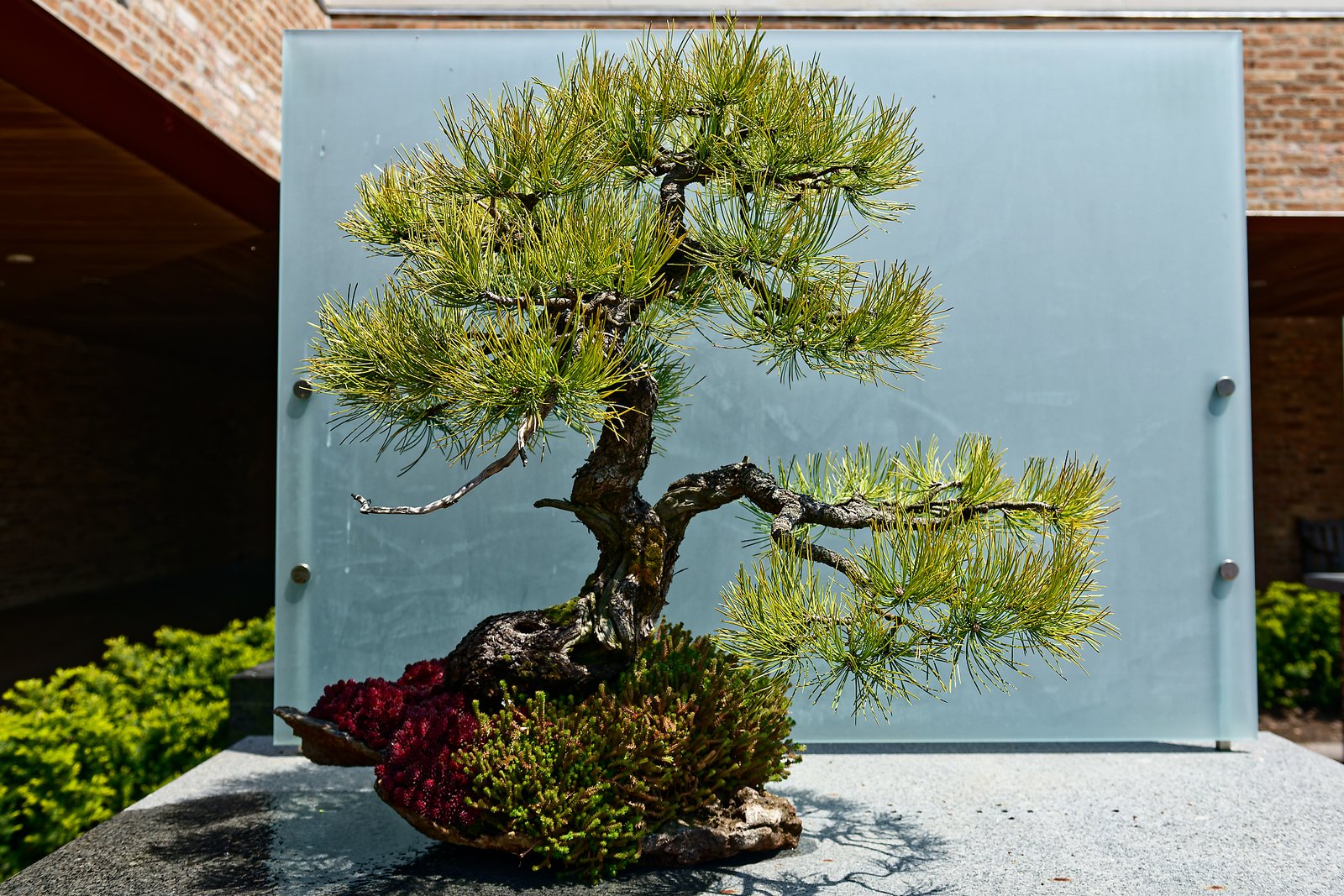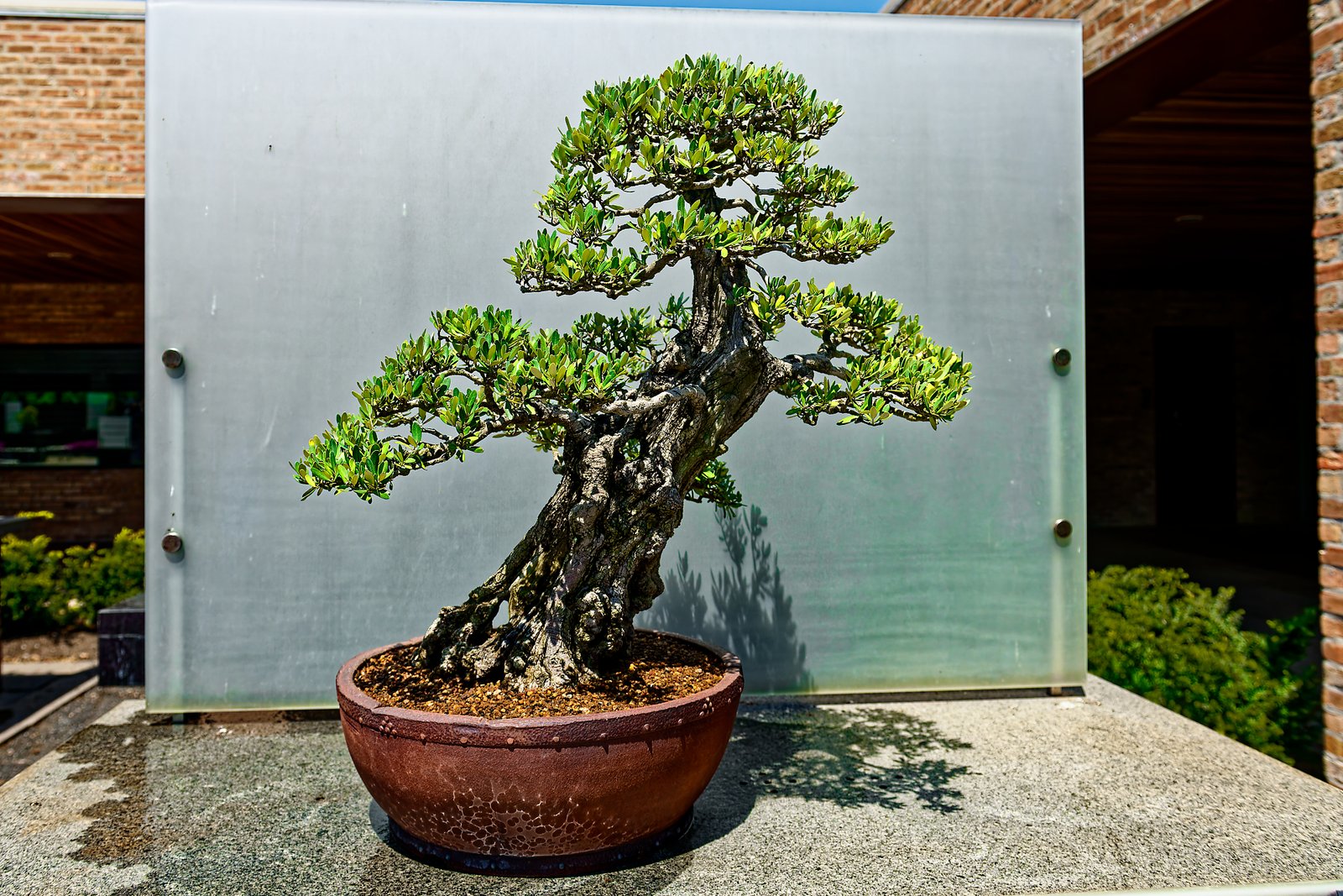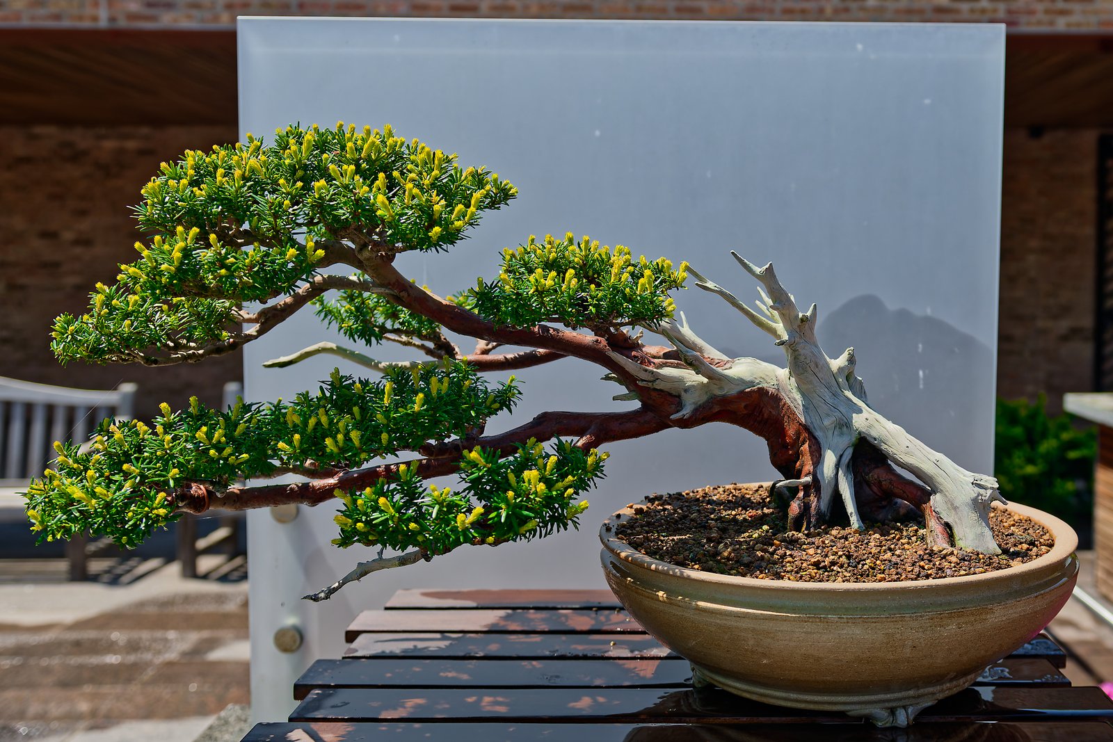 W tej części przedstawię drzewka bonsai w ekspozycji na świeżym powietrzu. Każdy chyba wie, co to jest azjatycka sztuka bonsai:) Ogólnie mówiąc jest to miniaturyzacja roślin, ale w zgodzie z naturą. Jest kilka stylów tej sztuki. Żeby była w miarę równowaga w zdjęciach w każdej części, na końcu dodałem parę zdjęć ptaszków spotkanych po drodze.