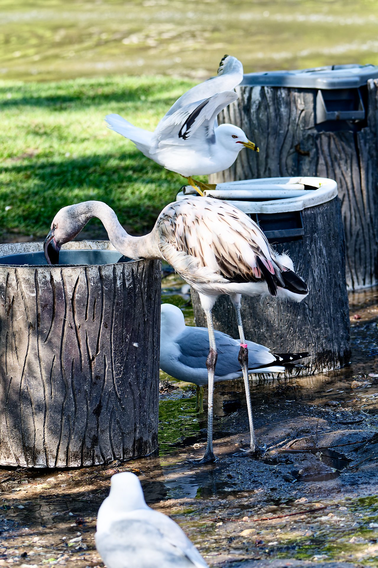 Flamingi też pokażę, ale nie takie różowe. To ponoć zależy od diety; w takim razie te francuskie jedzą nie za dużo tych skorupiaczków zawierających barwnik 🙂 albo to inny podgatunek (flaming karmazynowy vs. flaming różowy).