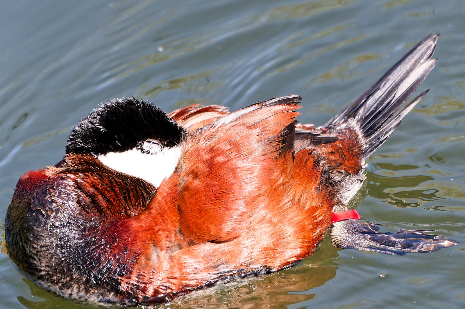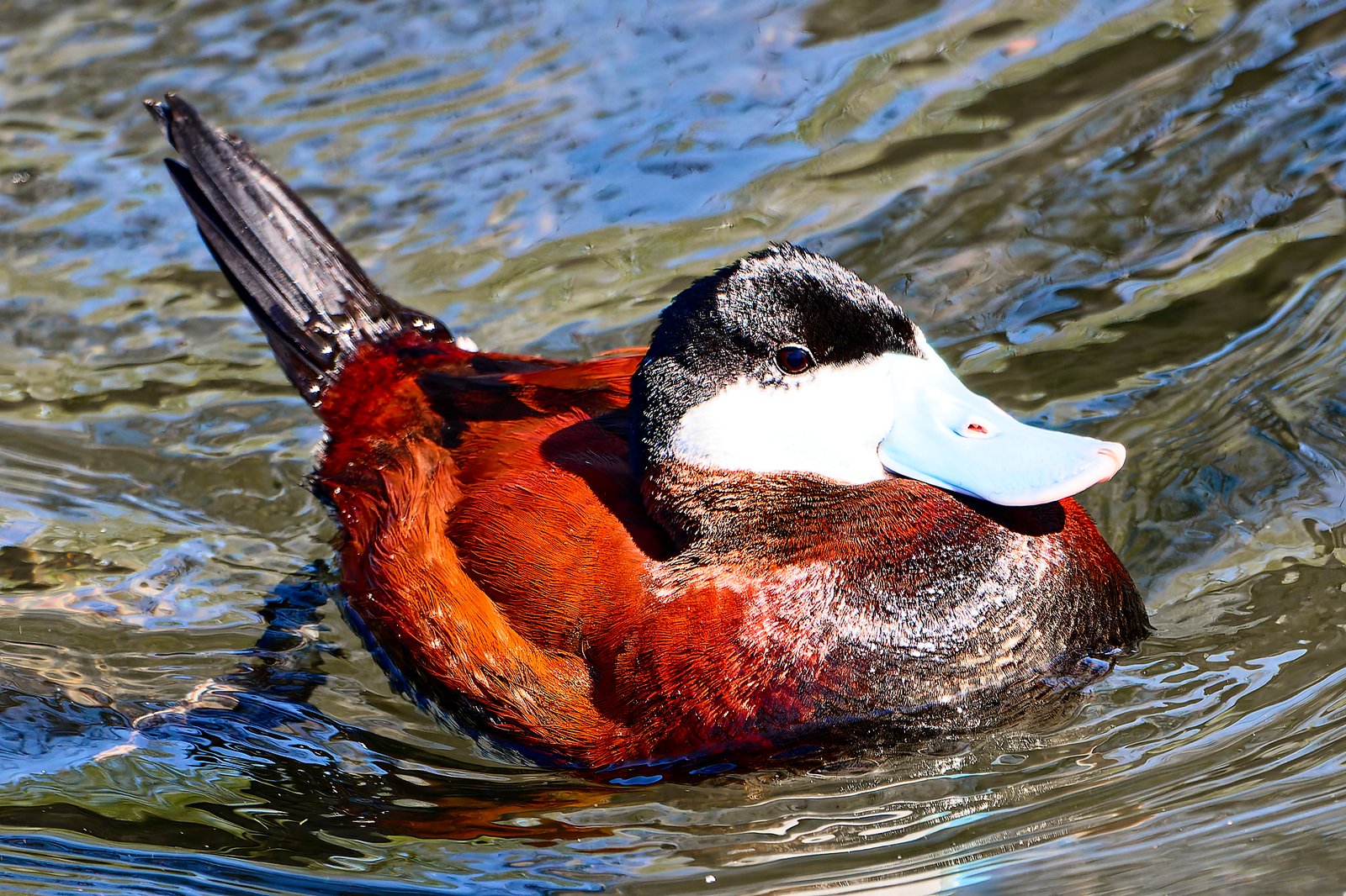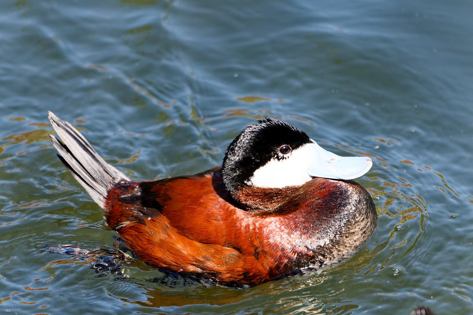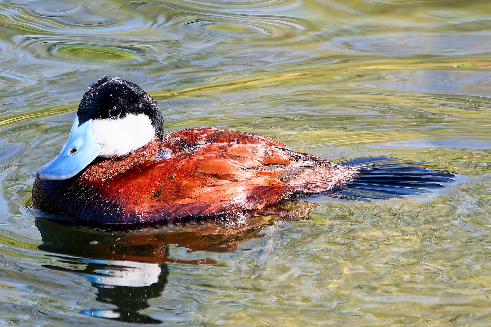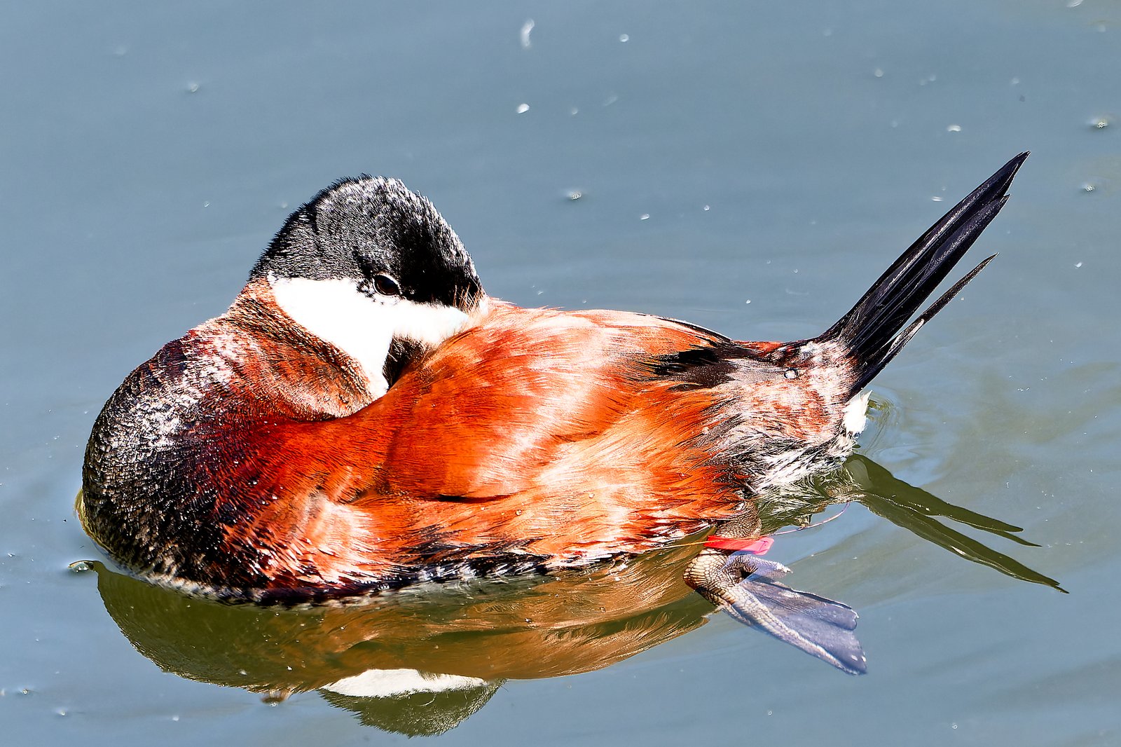 Sterniczka jamajska bardzo elegancka, ciekawe, że ogon kładzie na wodzie.