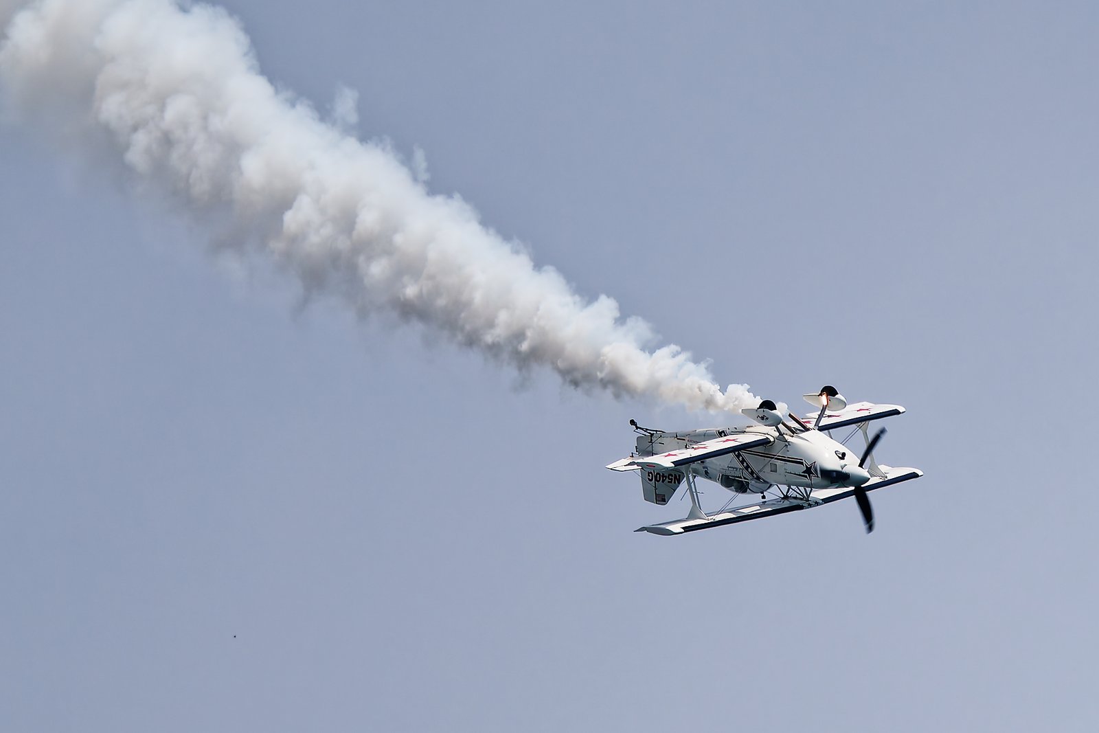 Akrobacje wręcz niemożliwe, najbardziej mi się podoba z tych tancerzy podniebnych biały samolot z rejestracją N540G na ogonie, wg. internetu ten eksperymentalny model nazywa się (Dodge Douglas) Machaira.