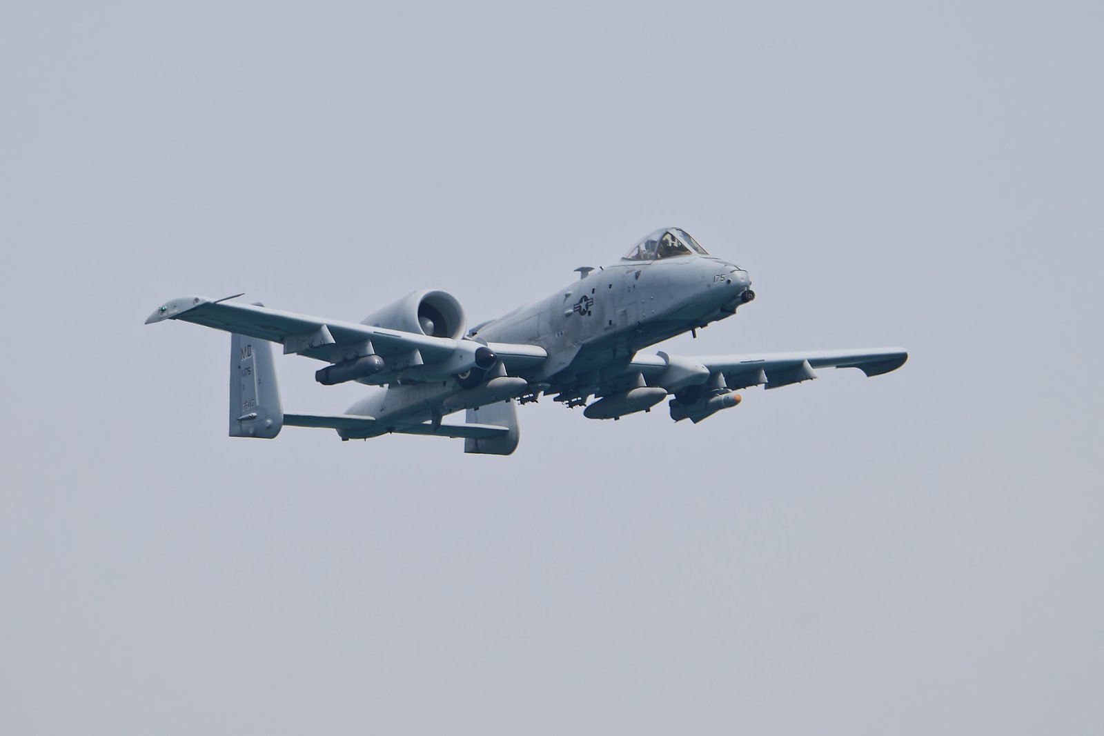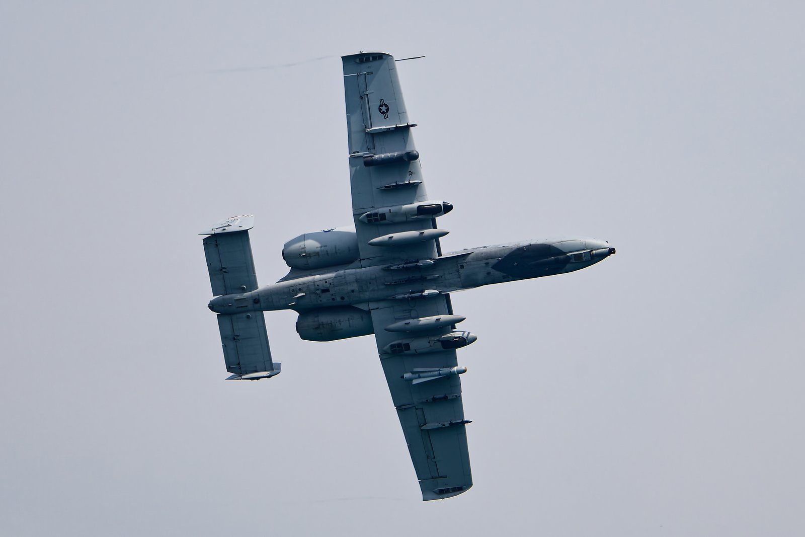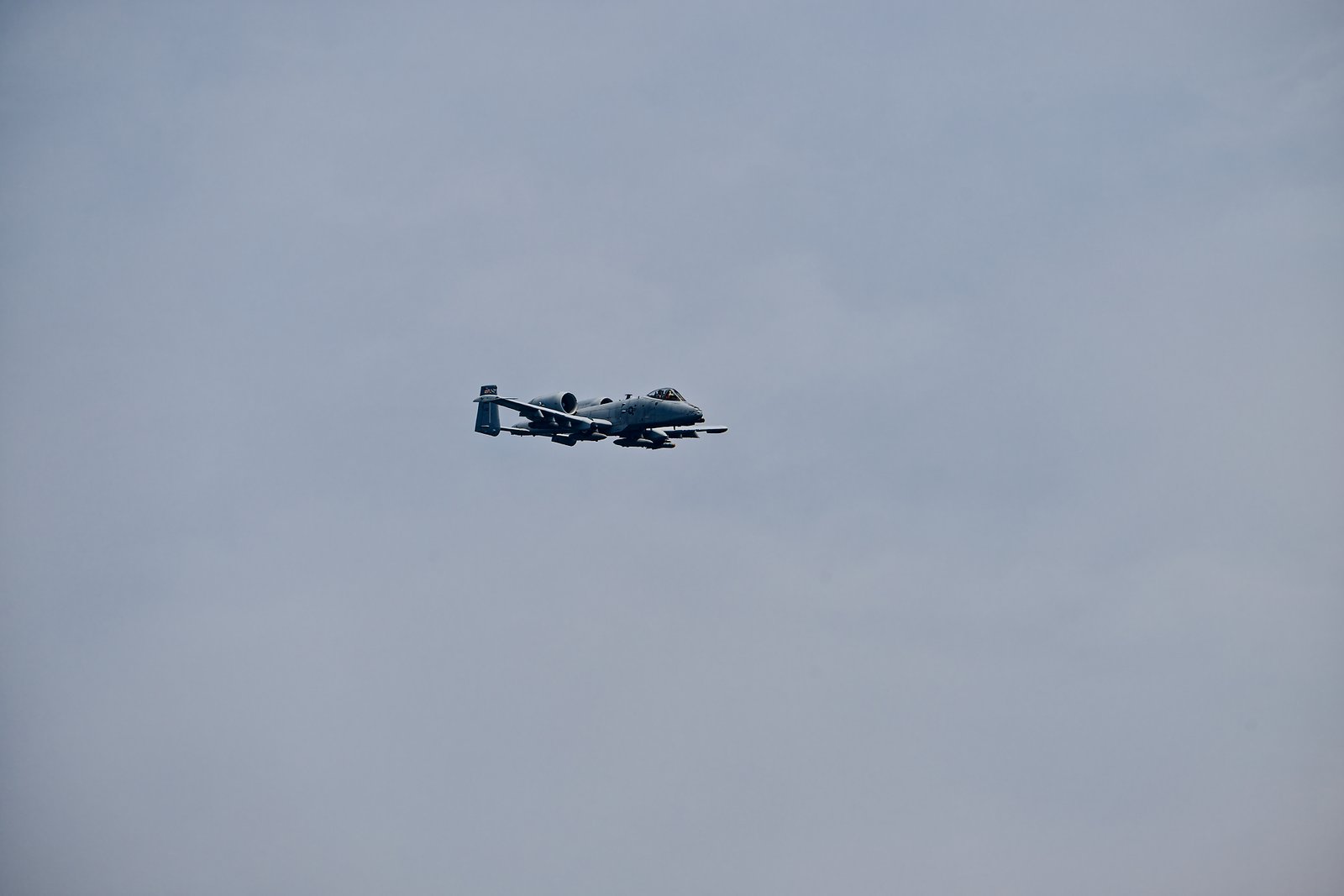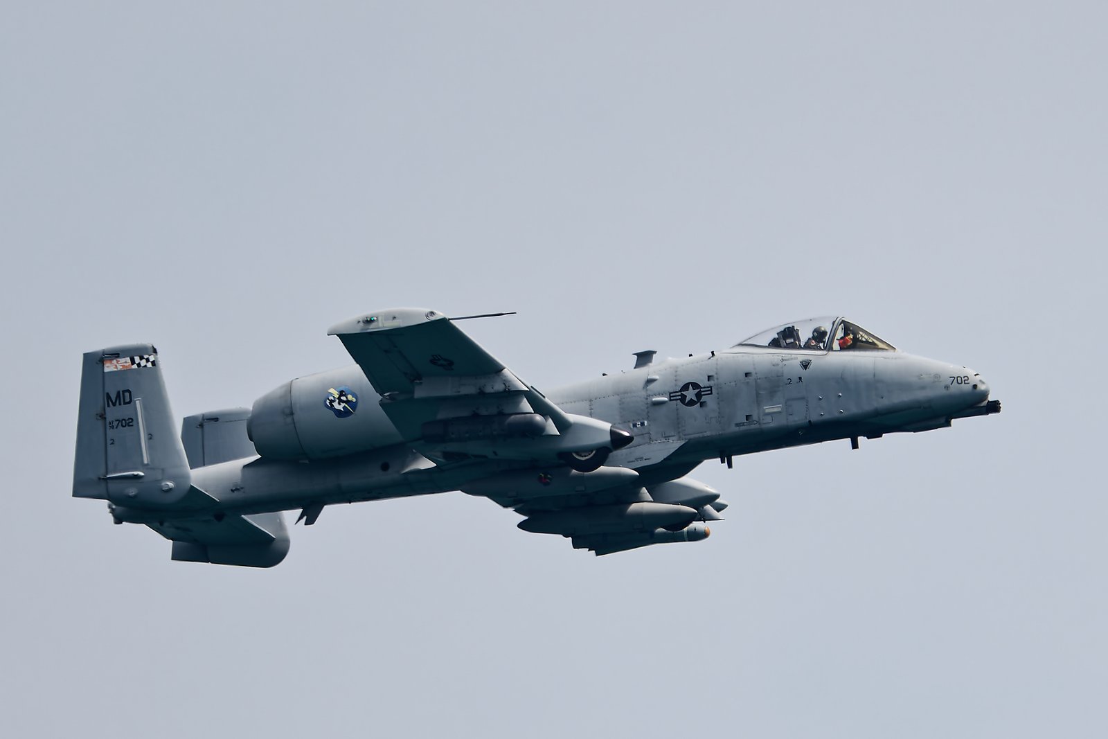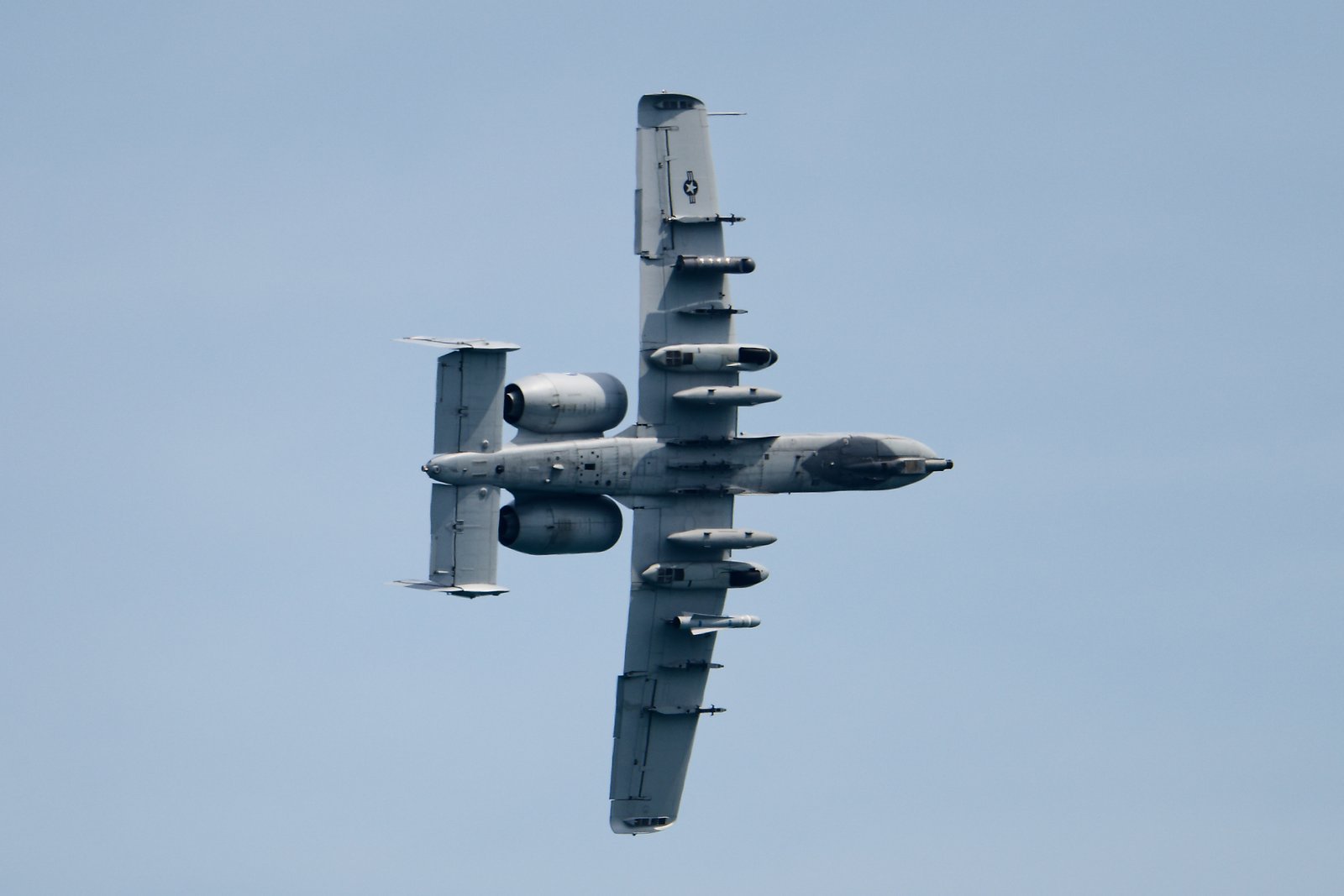 Samolot, który podpisałeś jako ciężkie ruszenie, to mój ulubiony model z amerykańskiego lotnictwa szturmowego, Fairchild Republic A-10 II Thunderbolt, zwany również „Warthog” (czyli Guziec), specjalnie zaprojektowany tak, żeby wytrzymać ciężki ostrzał z ziemi, a na pokładzie ma jedno z najcięższych działek w tego typu samolotach, siedmiolufowe obrotowe GAU-8 Avenger kalibru 30 mm, potężnie szybkostrzelne, robi sieczkę z czołgów i innych pojazdów opancerzonych. Plus przenosi imponującą ilość uzbrojenia pod skrzydłami (co zresztą częściowo widać na Twoich zdjęciach). Z tego, co pamiętam, obecnie lata na nich (jeszcze) Gwardia Narodowa, a z oznaczeń na statecznikach pionowych wynika, że to samoloty 175 skrzydła tejże Gwardii z bazy Warfield Air w Marylandzie.