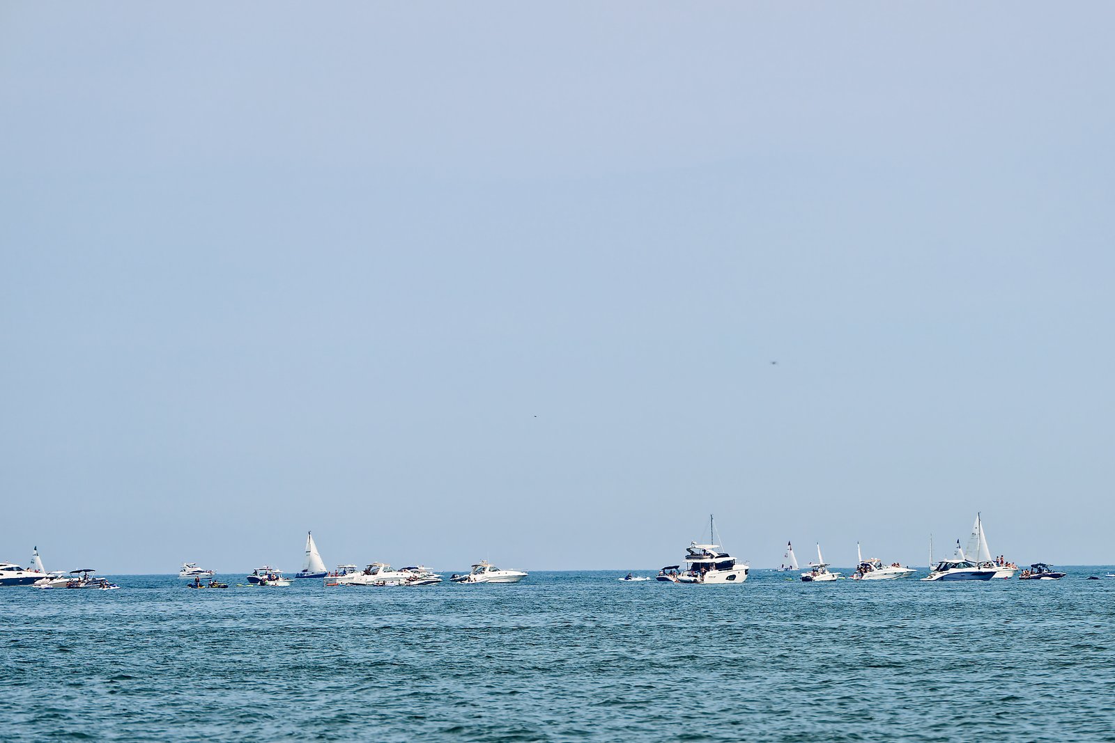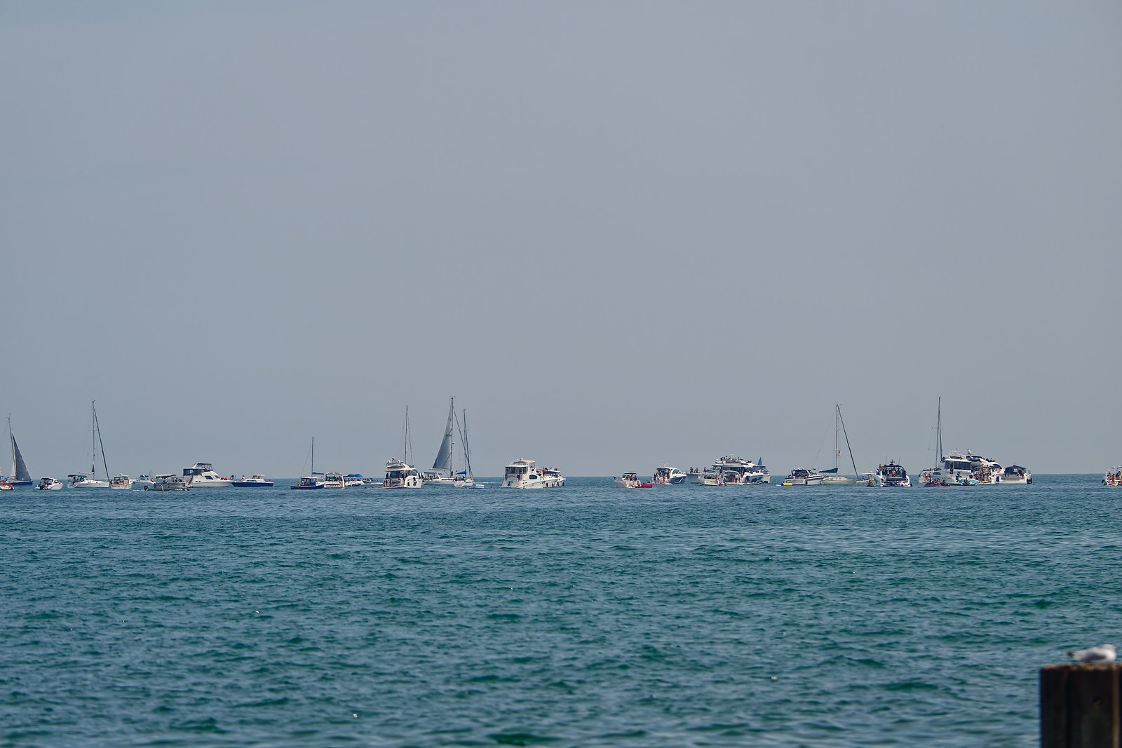 Powietrzno-wodne pokazy corocznie odbywają się w Chicago w drugi weekend sierpnia na jeziorze Michigan. Główne pokazy odbywają się przy plaży prawie w centrum Chicago. W tamtym roku pomyślałem, że będzie masa ludzi, a ja nie lubię ścisku i tłoku, dlatego pojechałem na plażę nieco na północ od tej głównej. I to był trochę błąd niestety, ponieważ 3/4 pokazu, a może i więcej nie dotarło do mnie. Dlatego pisałem wtedy, że miała być niespodzianka i niestety nie wyszła. Także w tym roku nie popełniłem już tego błędu i pojechałem do centrum. Doszedłem na miejsce około godziny 9:45, pokazy miały się zacząć od godziny 10:30. Ludzi oczywiście było multum. Znalazłem jakoś nawet niezłe stanowisko na nabrzeżu, gdzie już było sporo gości z aparatami. Pogoda dopisała w kratkę, było częściowo pochmurno, częściowo słonecznie, zresztą na zdjęciach to będzie widać. Pokaz miał trwać do trzeciej godziny po południu, także wychodziło prawie pięć godzin. Z drugiej strony to dobrze, że nie było pełnego słońca, bo chyba by mnie stamtąd wynosili. I tak później wyglądałem jak zawodowy czerwonoskóry. Zdjęć zrobiłem masę. Już w zasadzie wychodziłem, jak aparat pokazał pełną kartę. Pierwszy raz zapełniłem moją kartę pamięci za jednym razem! A jest tego 128 GB. Rozbijam pokaz na trzy części, ponieważ w jednej było by tego za dużo.