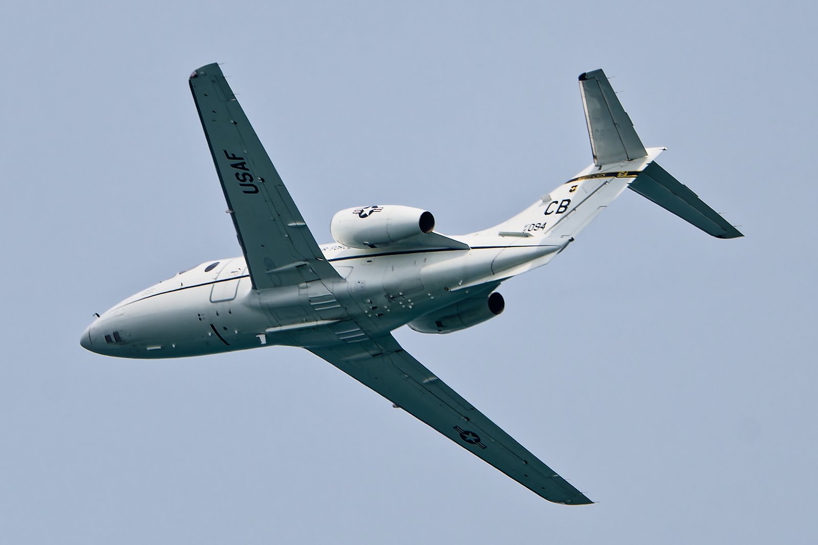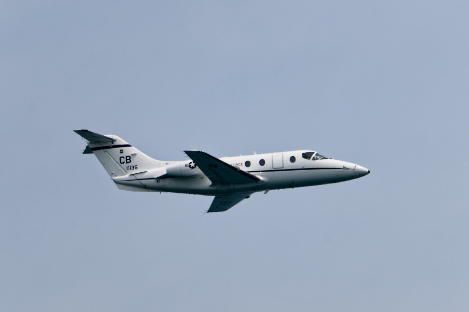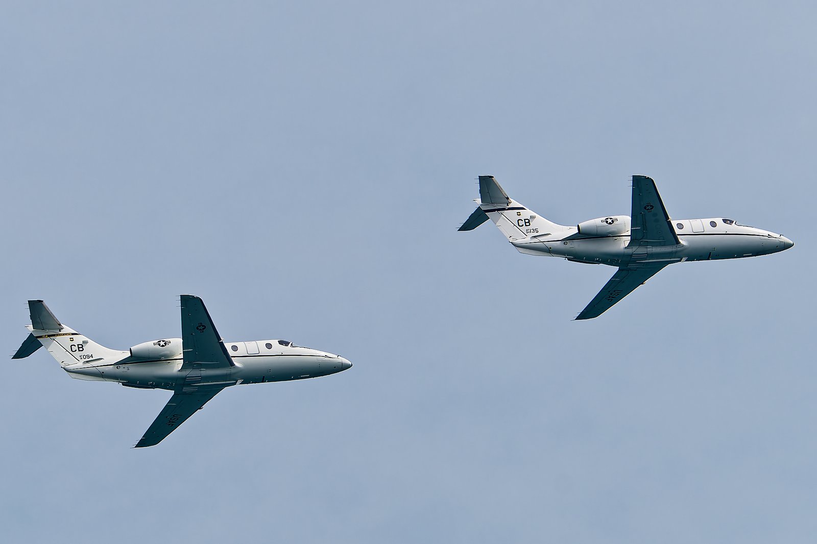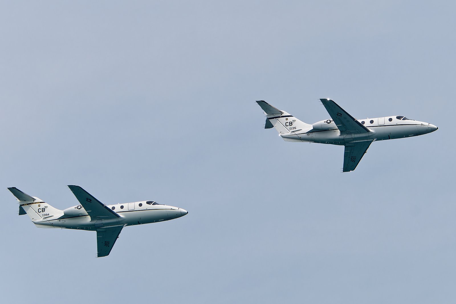 Białe odrzutowce to szkoleniowe Raytheony T-1A Jayhawk.
