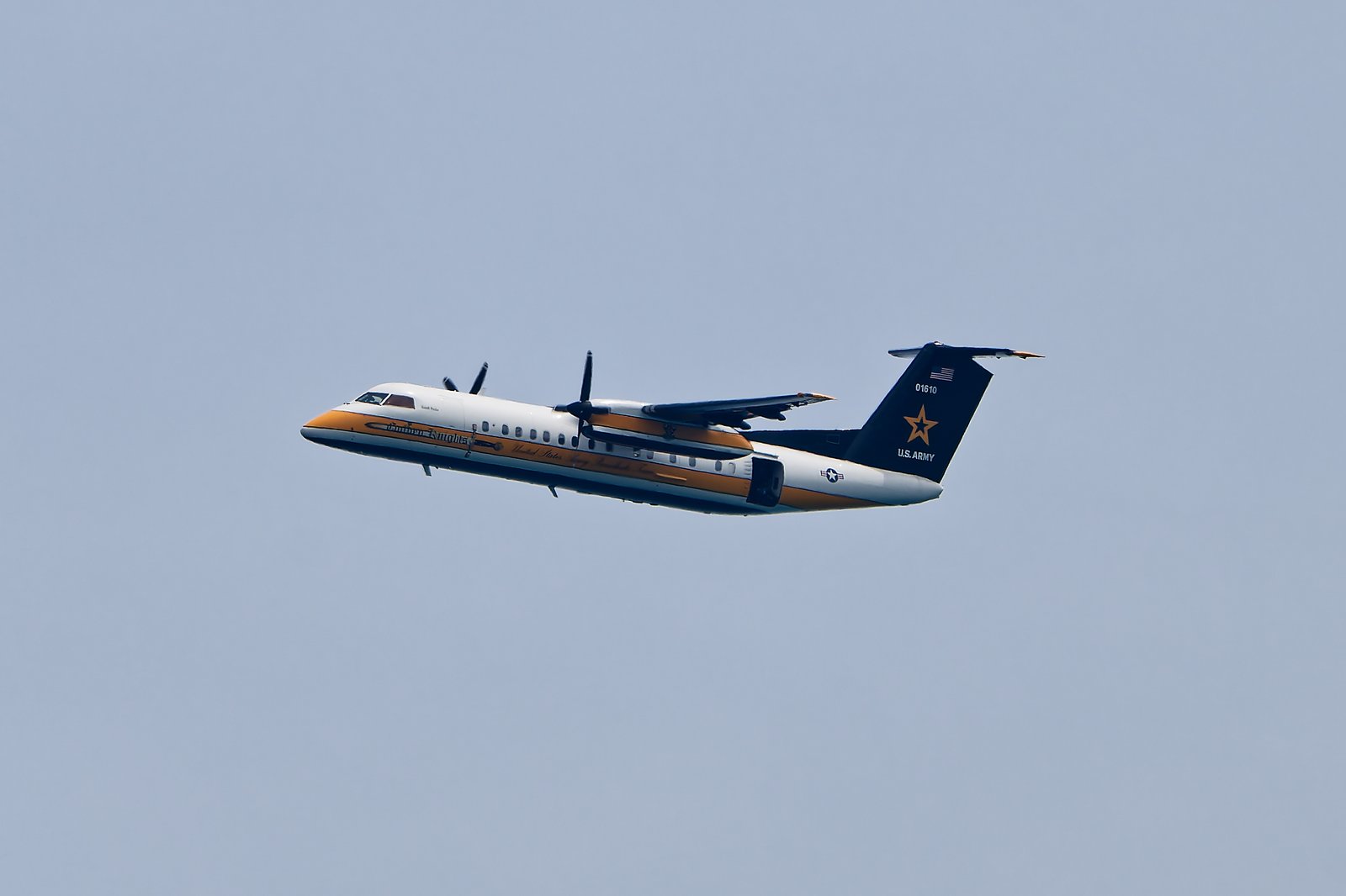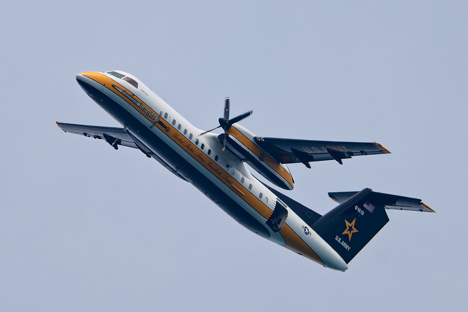 Spadochroniarzy zrzucał samolot armii (nie sił powietrznych, mimo że w powietrzu) Bombardier C-147A, wojskowa wersja cywilnego DHC Dash 8-300.