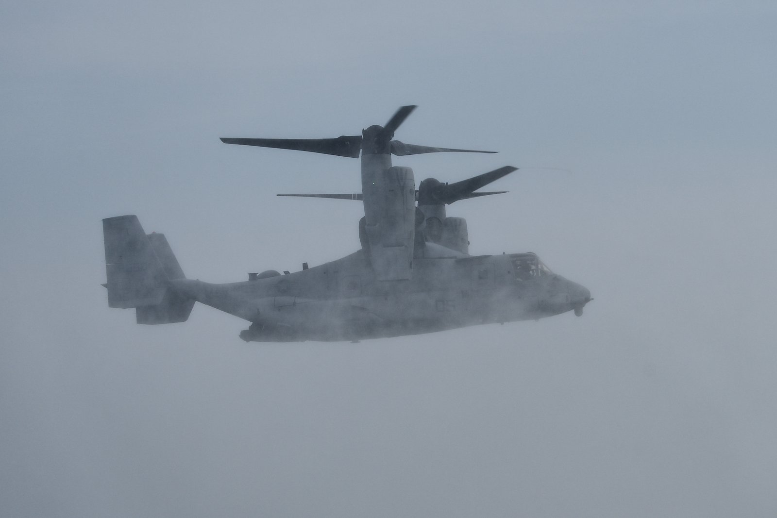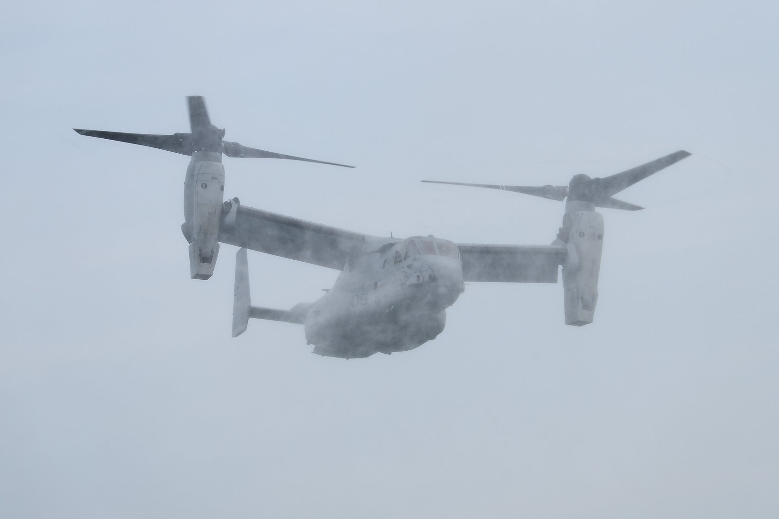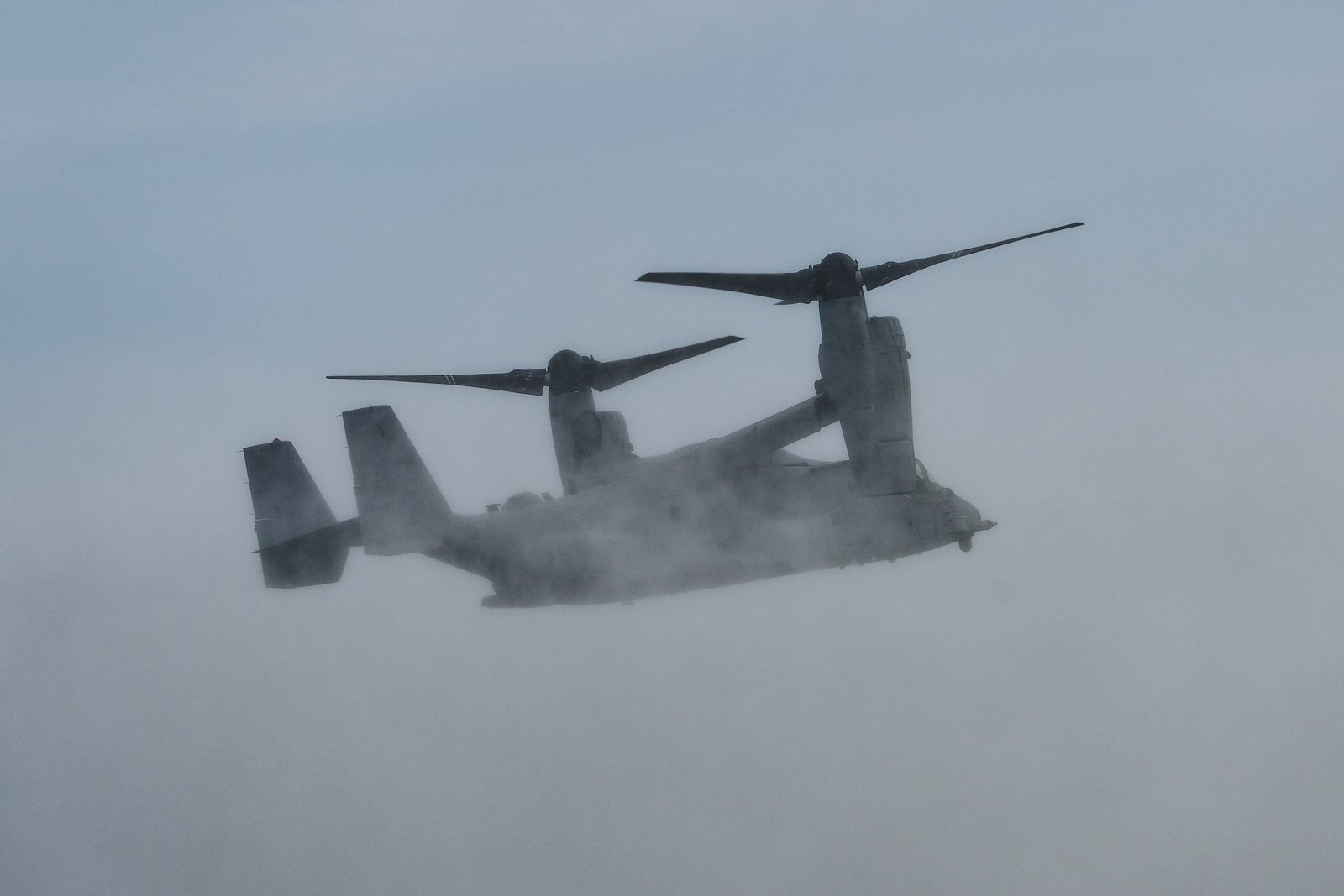Pionowzlot to Bell Boeing V-22 Osprey, faktycznie, kombinacja helikoptera i samolotu, jak widać po oznaczeniach, używany przez marines. Dwa takie latały kiedyś na ćwiczeniach nad Gdynią, ale wysoko, nie robiły takiego zamieszania nad wodą ani nad plażą 🙂