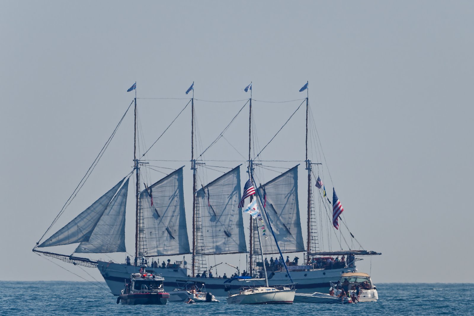 Ciekawym elementem Water Show był szkuner o czterech równej wysokości masztach — bardzo elegancka jednostka.