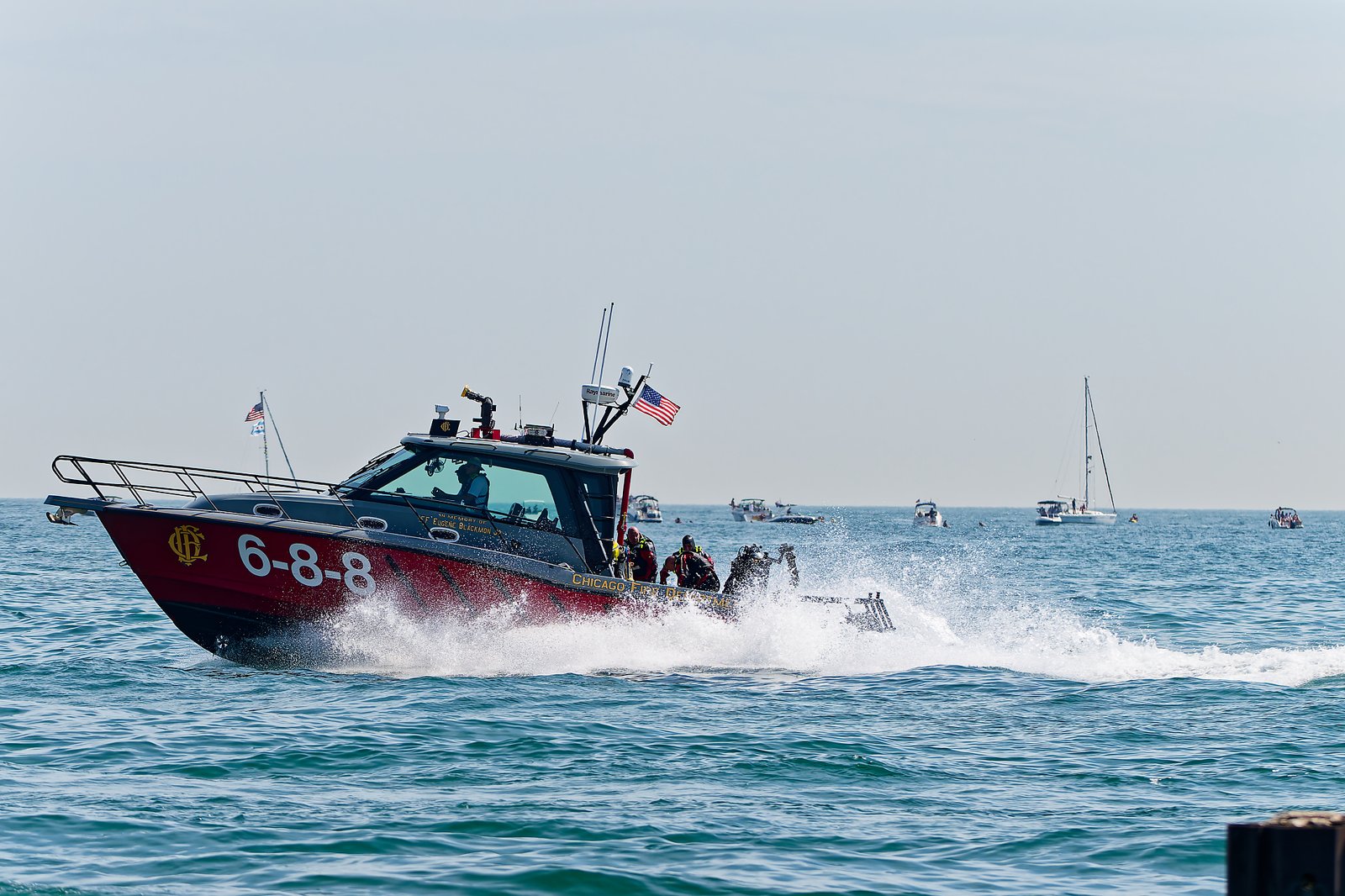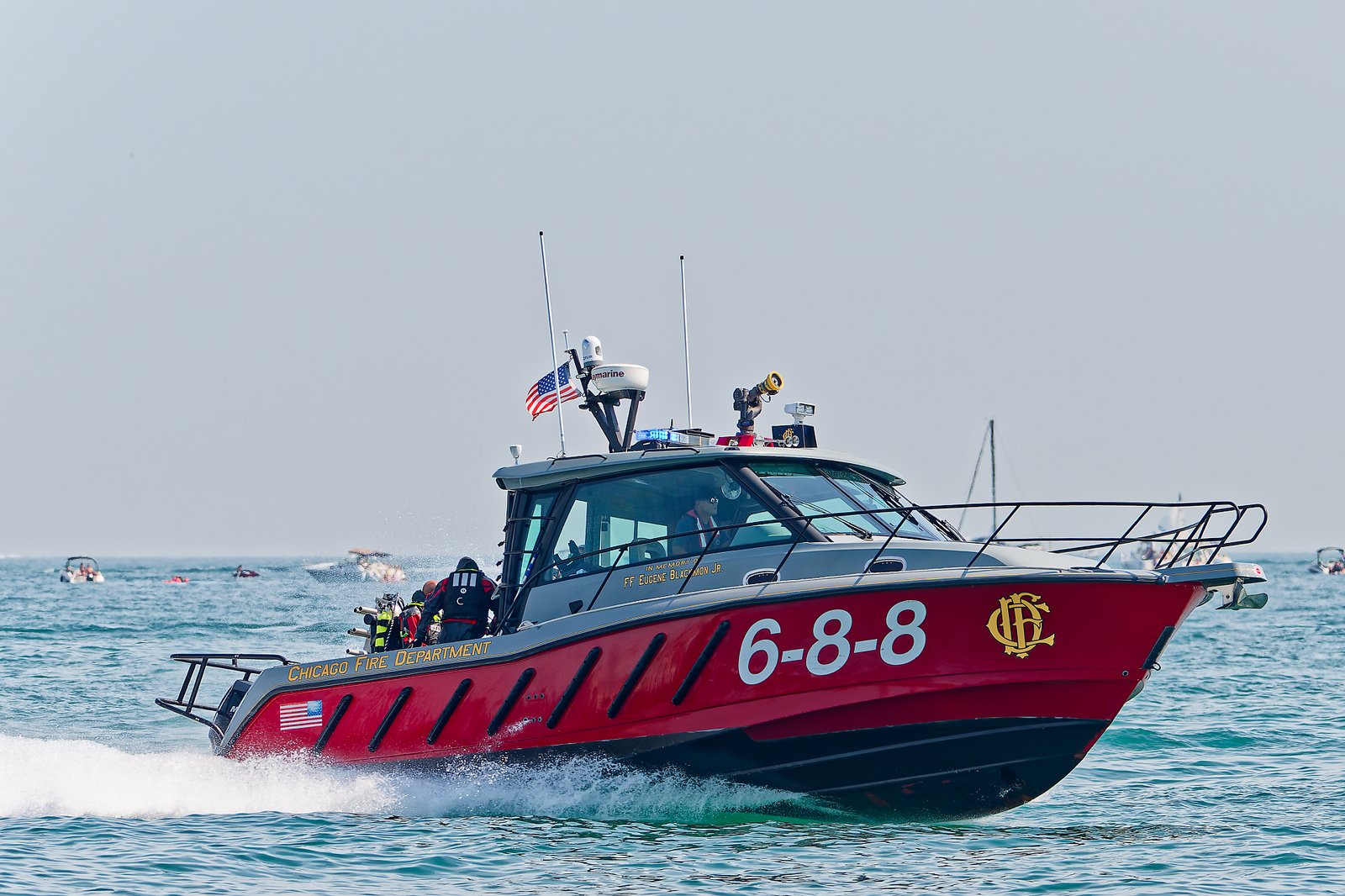 Jedna z łodzi strażackich na zdjęciach to „Eugene Blackmon”, z tego, co widzę, znalazłem również informację, że tamtejsza straż pożarna używa jednostek nawodnych od 1877 roku!
