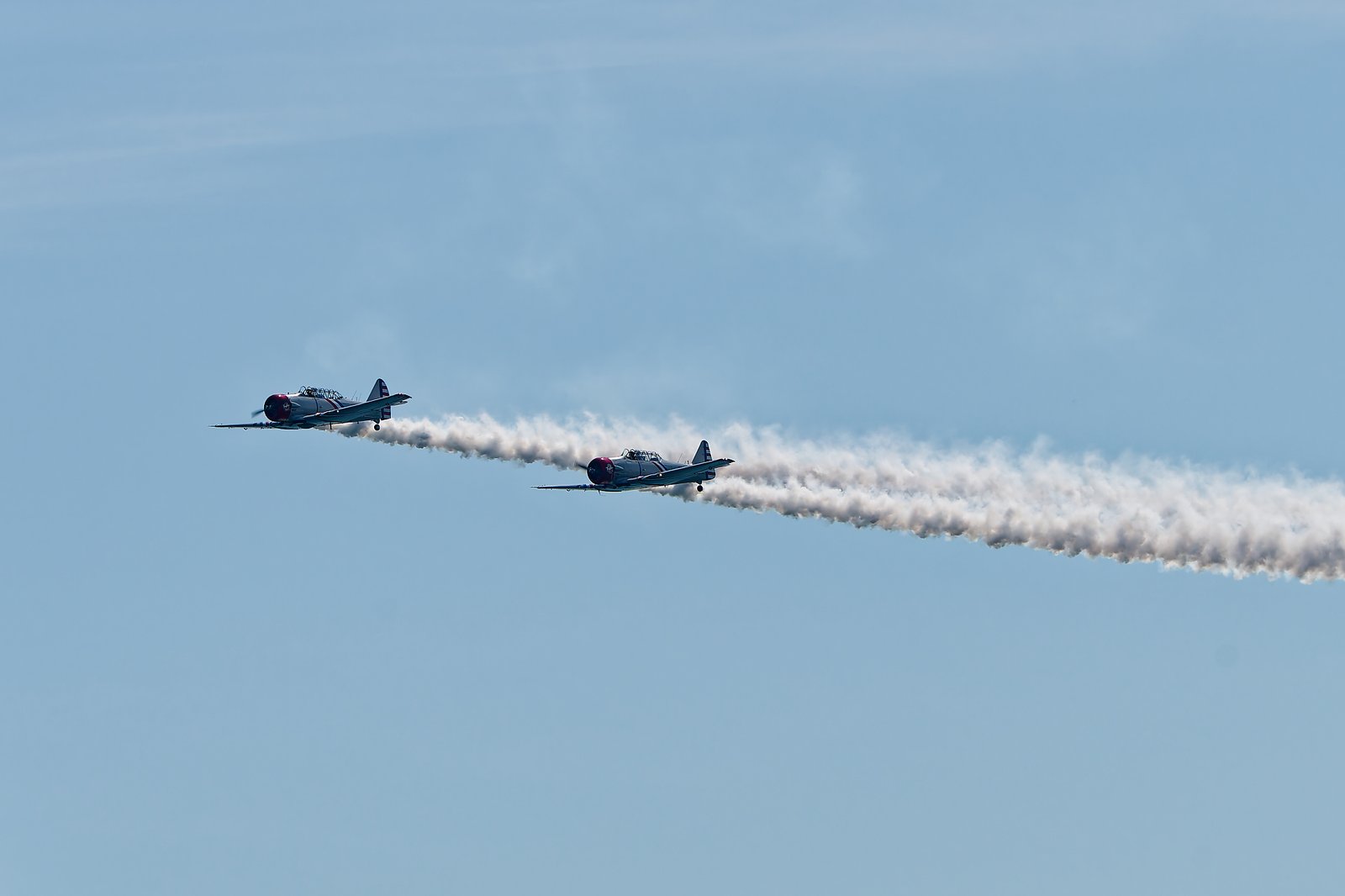 Dwa samoloty śmigłowe z wczesnymi oznaczeniami lotnictwa marynarki wojennej US Navy to North American T-6 Texan, przez marynarkę używane pod oznaczeniem SNJ, a tutaj latające w zespole Warbird Thunder.