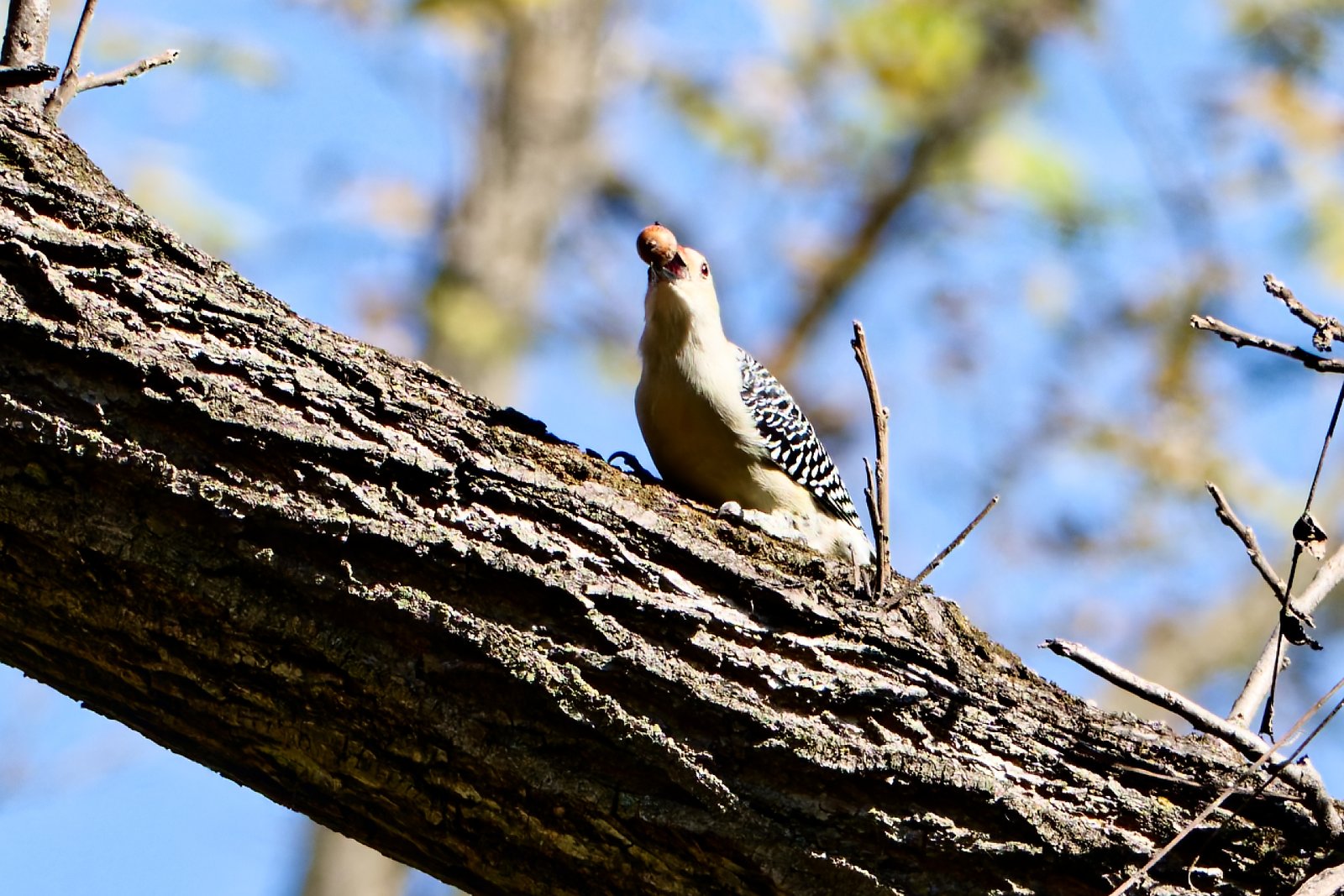 Dzięcioł i dzięciur w jednym stali domu. Tak, na jesieni bywają znakomite fotostrzały dzięki orzechom i żołędziom!