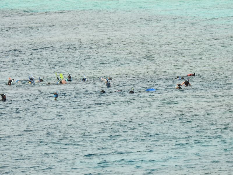 Nb. po raz pierwszy spróbowałem wstrzymać oddech i zejść pod powierzchnię, głębiej, niż pozwala rurka. I teraz tak: w masce całotwarzowej, jakiej ostatnio używam, jest to kłopotliwe, ponieważ zostaje pod nią tyle powietrza, że po pierwsze utrudnia nurkowanie głową w dół (zmienia pozycję całego człowieka), a po drugie w ogóle wypycha. Jeszcze pół biedy, jeżeli dam radę zanurzyć w wodzie płetwy, bo wtedy energicznie machając mogę wepchnąć całego Quacka głębiej. Być może w tradycyjnej masce byłoby lepiej, miałem ją w pokoju, ale nie na sobie, a muszę kiedyś spróbować.