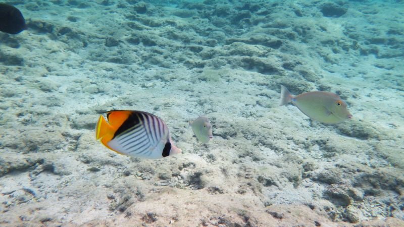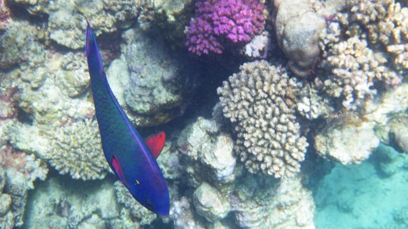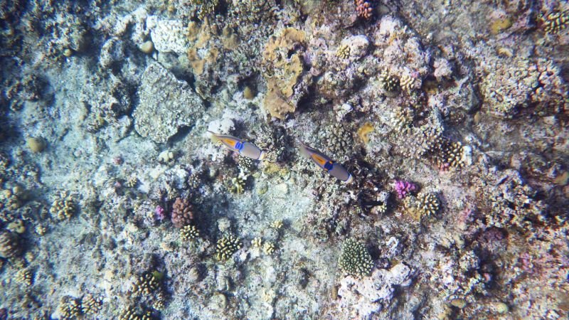 Natomiast w galerii podwodnej, owszem, jest parę nowych rybek, jedne widoczne lepiej, inne (zwykle nieco głębiej, gdzie dociera mniej światła) gorzej. I jeden gad na koniec 🙂 ponieważ codziennie byliśmy na rafie, i to w dwóch miejscach (z plaży, na płytkiej wodzie, gdzie lepsze światło, i z pomostu, na głębokiej wodzie, gdzie z kolei większy wybór ryb), to było z czego wybierać 🙂