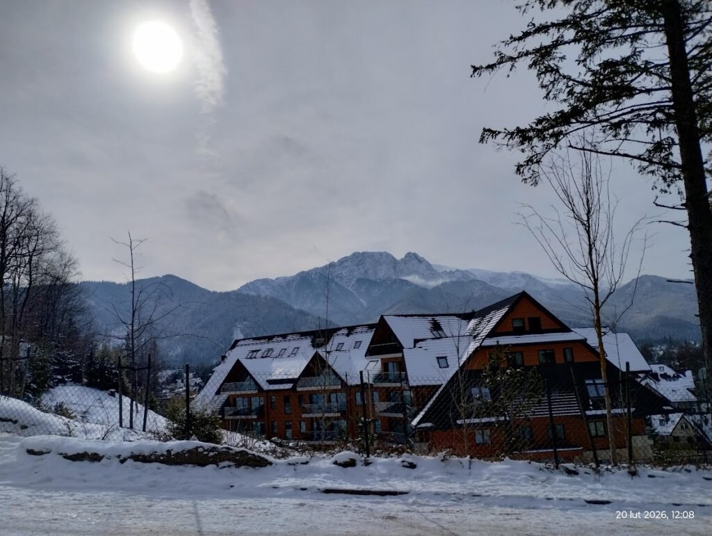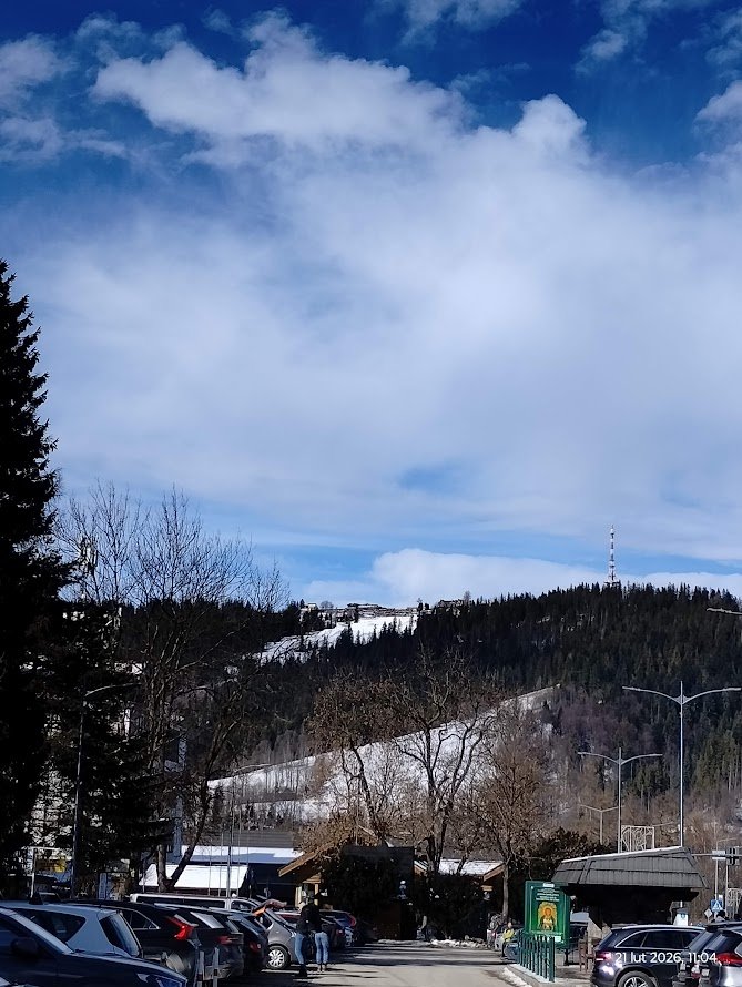 Sobota 21.02.26 wita nas błękitem nieba i pięknym widokiem na góry.