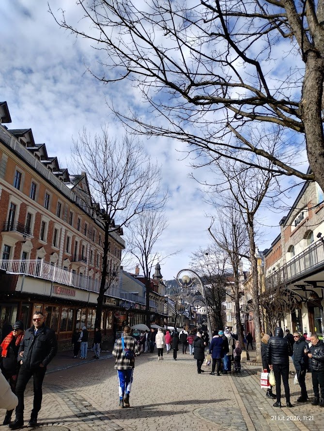 20.02.26 spod hotelu punktualnie o godz. 12 ruszamy na mały spacer z kolegą, który jest członkiem naszego Stowarzyszenia oraz Przewodnikiem Tatrzańskim i ratownikiem TOPR. Świetnie opowiada o górach, o Zakopanem, ale i bardzo interesująco o swojej pracy.
